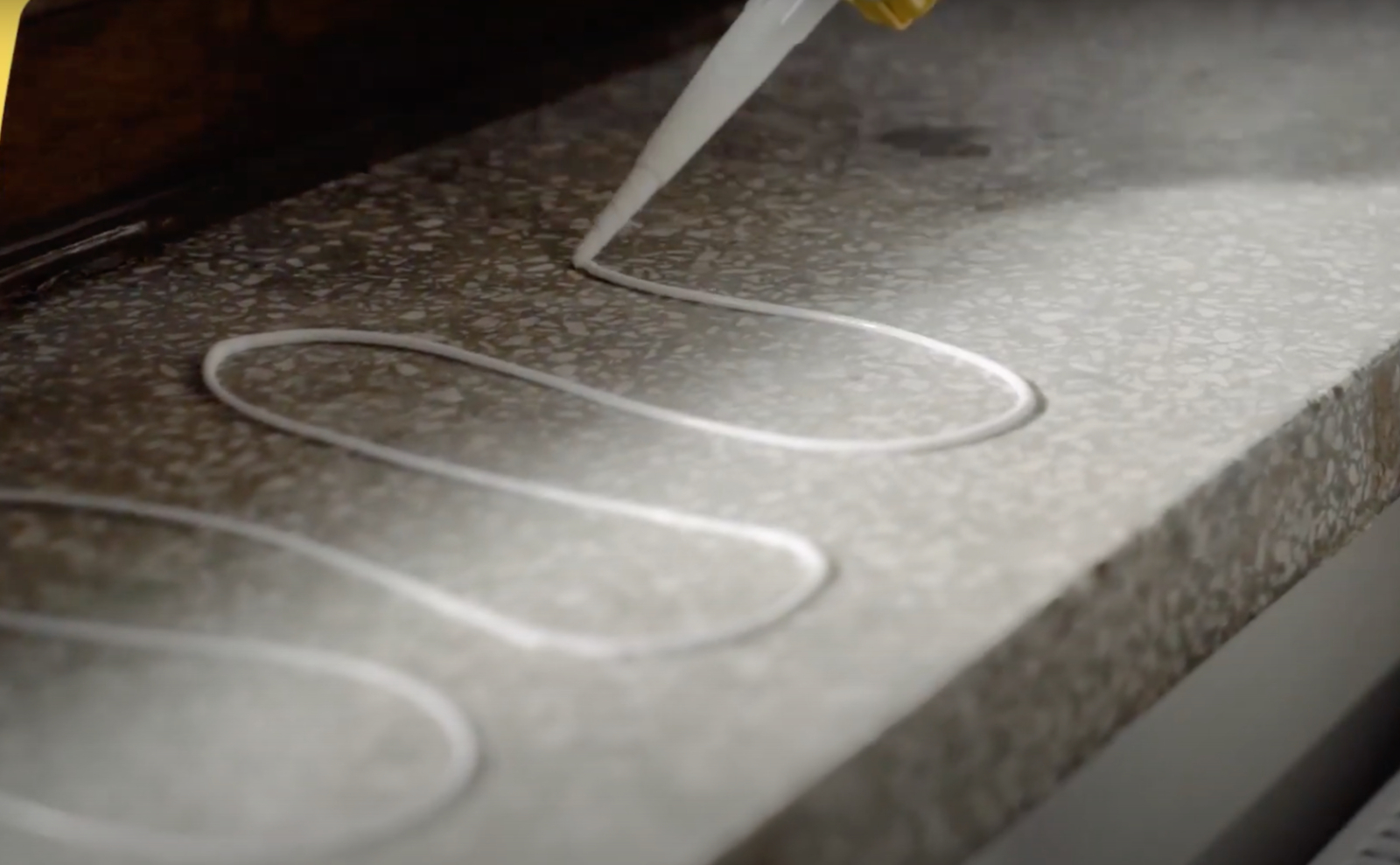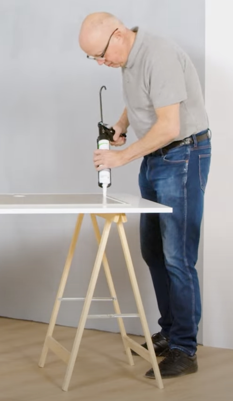Se aplică sub formă de cordon sau puncte, pe suprafața curată și stabilă, apoi se presează elementul de montat