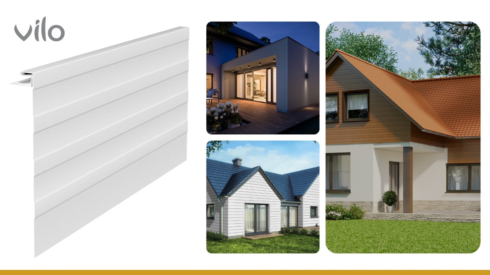 Profilul se integrează perfect cu sidingul și panourile de fațadă Vilo, menținând ritmul vizual al lamelelor și continuitatea suprafeței. Finisajul nu întrerupe designul fațadei, ci îl completează.