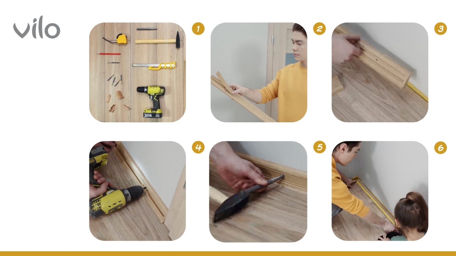 Pentru un finisaj corect, uniform și durabil, se recomandă utilizarea colțurilor exterioare originale Vilo Flex, în aceeași culoare cu plinta. Acestea asigură mascarea completă a tăieturilor, continuitate vizuală și protecția eficientă a colțurilor de perete în timp.
