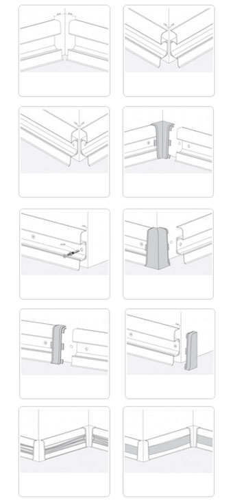 Îmbinarea se montează după fixarea segmentelor de plintă pe perete, prin poziționare directă peste zona de contact. Nu necesită tăieri suplimentare, scule speciale sau ajustări complexe. Montajul este simplu și poate fi realizat inclusiv de persoane fără experiență în lucrări de finisaj.