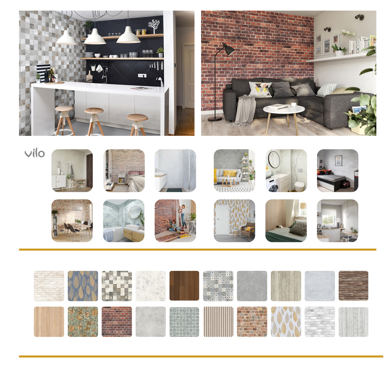 Imitații de lemn în nuanțe contemporary: White Plank, Blue Plank, Sunny Plank, Nutmeg Wood, Carmel Wood, Grey Wood, Light Wood. Modele de beton arhitectural: Concrete Graphic, Concrete Dark, Concrete Rays, Sheer, Dusky, Askot Grey. Imitații de cărămidă industrială: Loft Brick, Red Brick, Street Brick. Alte texturi: Silver Tiles, Hexacube, Corteen, Mikado Style, Mirage, Silver Lines, Fabric City, Daisy, Canvas Warm.