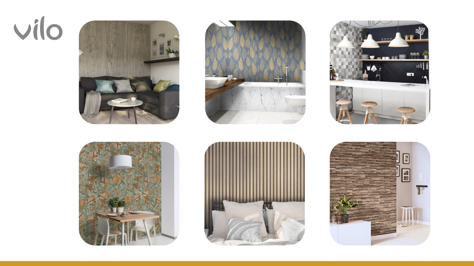 Gama Vilo Motivo cuprinde 54 de decoruri, grupate în colecțiile Modern, Classic și Fun. Decorurile sunt atent concepute pentru a reda aspectul materialelor naturale sau al finisajelor moderne, oferind libertate deplină în amenajarea spațiului.