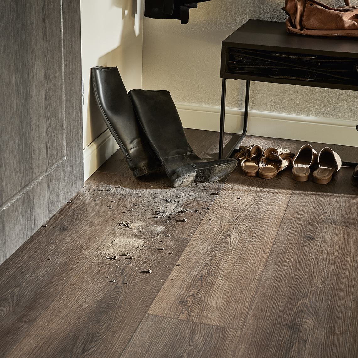 Stratul de uzură 0,55 mm protejează împotriva zgârieturilor, petelor și traficului zilnic. Pardoseala își păstrează aspectul ani la rând.