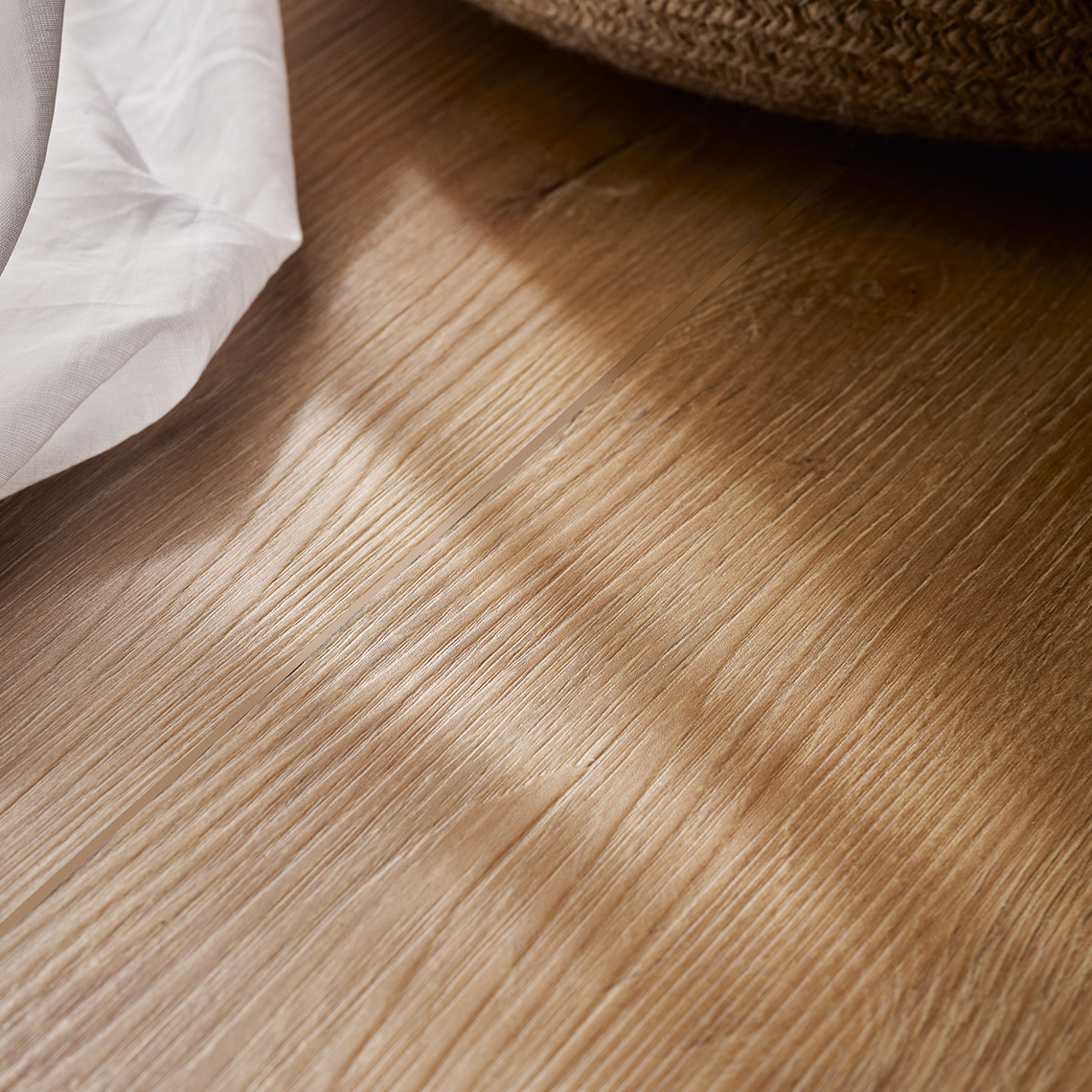Stratul de uzură 0,55 mm protejează împotriva zgârieturilor, petelor și traficului zilnic. Pardoseala își păstrează aspectul ani la rând.