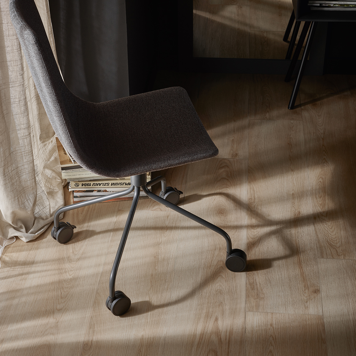 Stratul de uzură 0,55 mm protejează împotriva zgârieturilor, petelor și traficului zilnic. Pardoseala își păstrează aspectul ani la rând.
