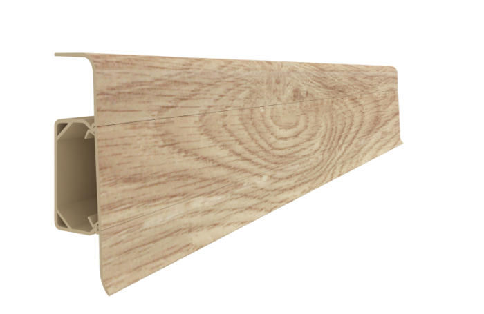 Dispune de canal interior pentru cabluri, se montează ușor cu cleme sau adeziv, și este disponibilă în 24 de decoruri naturale – de la alb și stejar, până la platan sau pin.