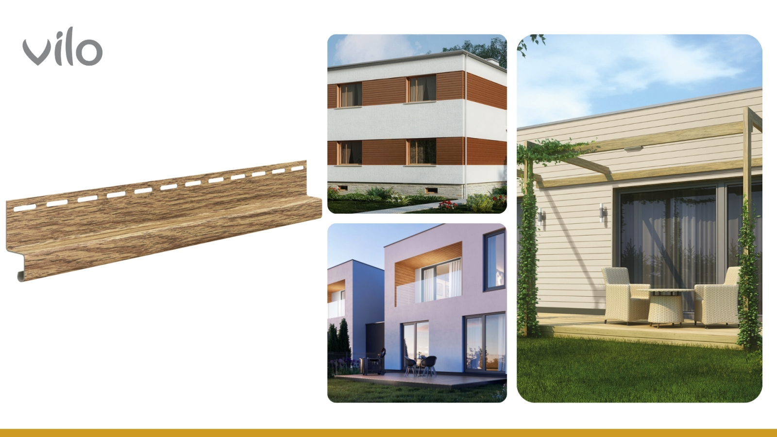 Profilul de scurgere Vilo SV(P) 16.5 are lungimea de 3,05 m (3050 mm) și se livrează la pachet de 10 bucăți. Din punct de vedere dimensional (conform schiței produsului), secțiunea are o înălțime totală aproximativă de 64 mm, o porțiune de sprijin/treaptă de aproximativ 22 mm și o margine de ghidaj de aproximativ 12 mm (valorile marcate cu „~” sunt orientative). Profilul este disponibil atât în nuanțe de lemn, cât și în variantă unicolor, pentru potrivire vizuală cu panourile de fațadă.
