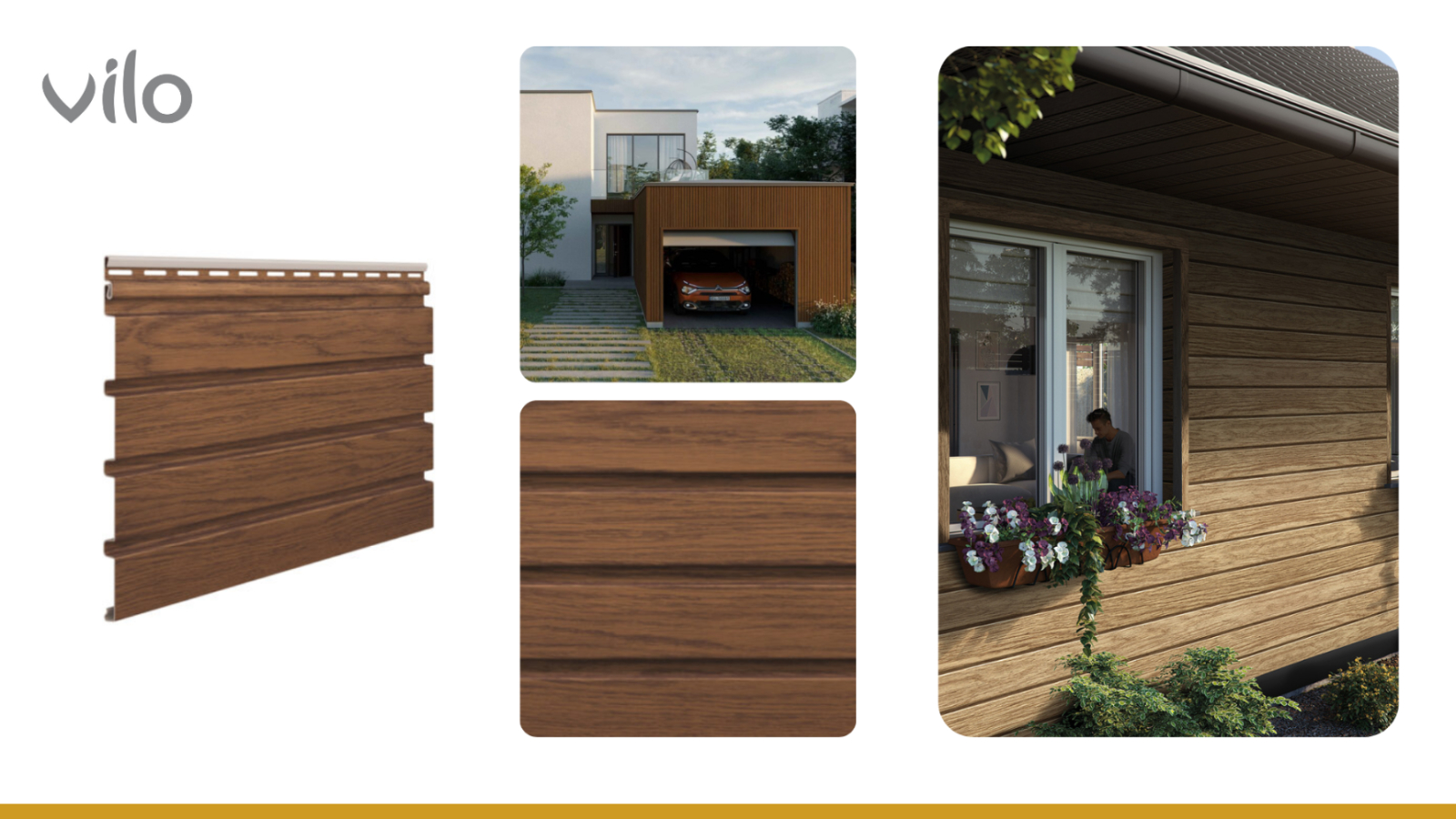 Riflajul decorativ exterior VILO FRONTO este un sistem de panouri lamelare din PVC-U, conceput pentru finisarea pereților exteriori și a plafoanelor expuse, precum zonele de fațadă, terase, balcoane sau streașini. Produsul este destinat utilizării la exterior și interior, fiind proiectat pentru a oferi un efect arhitectural modern, cu aspect de lemn, fără limitările și întreținerea specifice materialelor naturale.